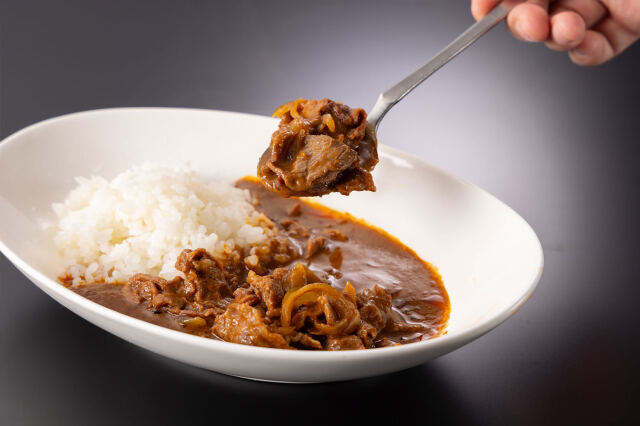 原材料:牛肉(国産)、玉葱、塩、デミグラスソース(牛肉、赤ワイン、玉葱、人参、セロリ、トマトペースト、トマトピューレ、小麦粉、ラード、ウスターソース、にんにく、塩、胡椒、砂糖、大豆、香辛料、豚肉、生乳)、/着色料(カラメル色素)、酸味料(クエン酸)、増粘剤(加工デンプン)、調味料(アミノ酸等)、酸化防止剤(亜硫酸塩)、(一部に牛肉・豚肉・乳成分・小麦・大豆を含む)